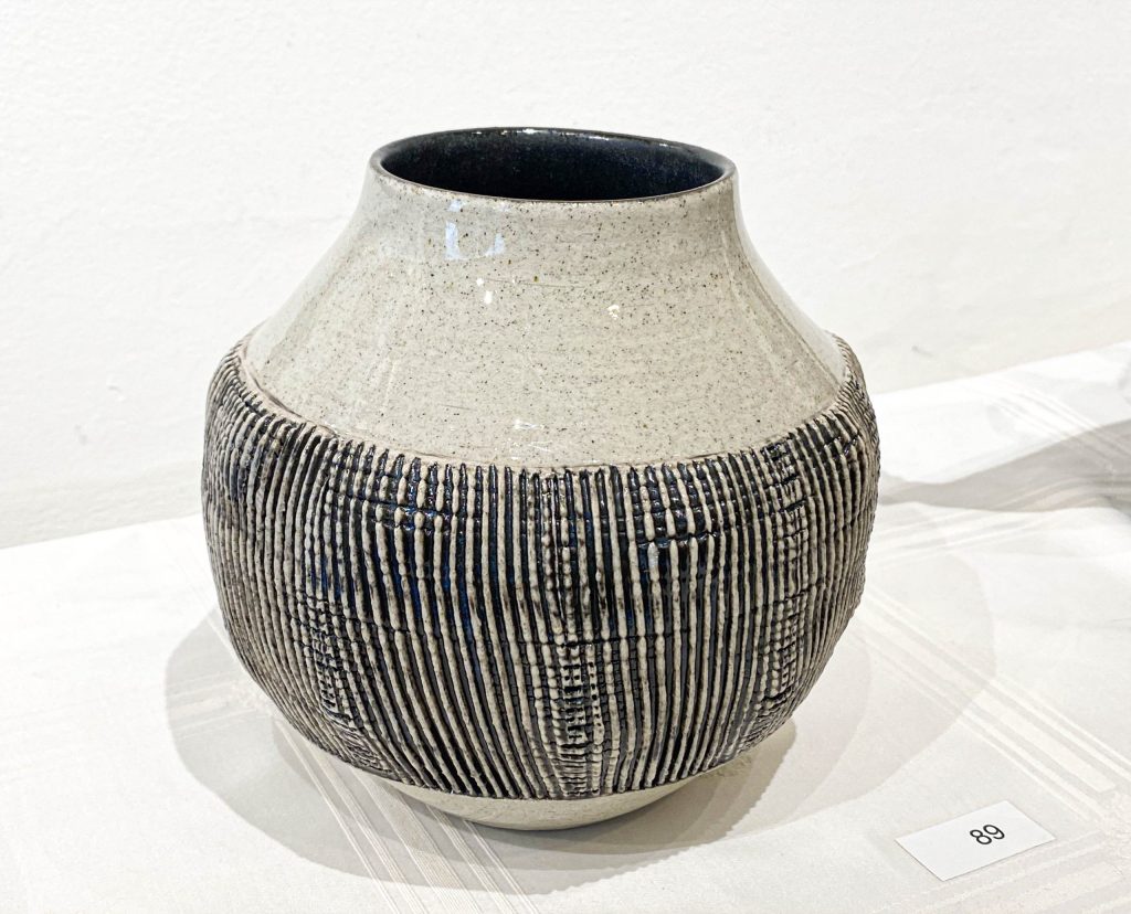 A compelling exploration of amorphous forms reminiscent of amphoras and other vessels. Negative space is as fluid as the positive spaces, and the artist has created well-balanced and intriguing forms that feel as though they might start shifting at any moment.