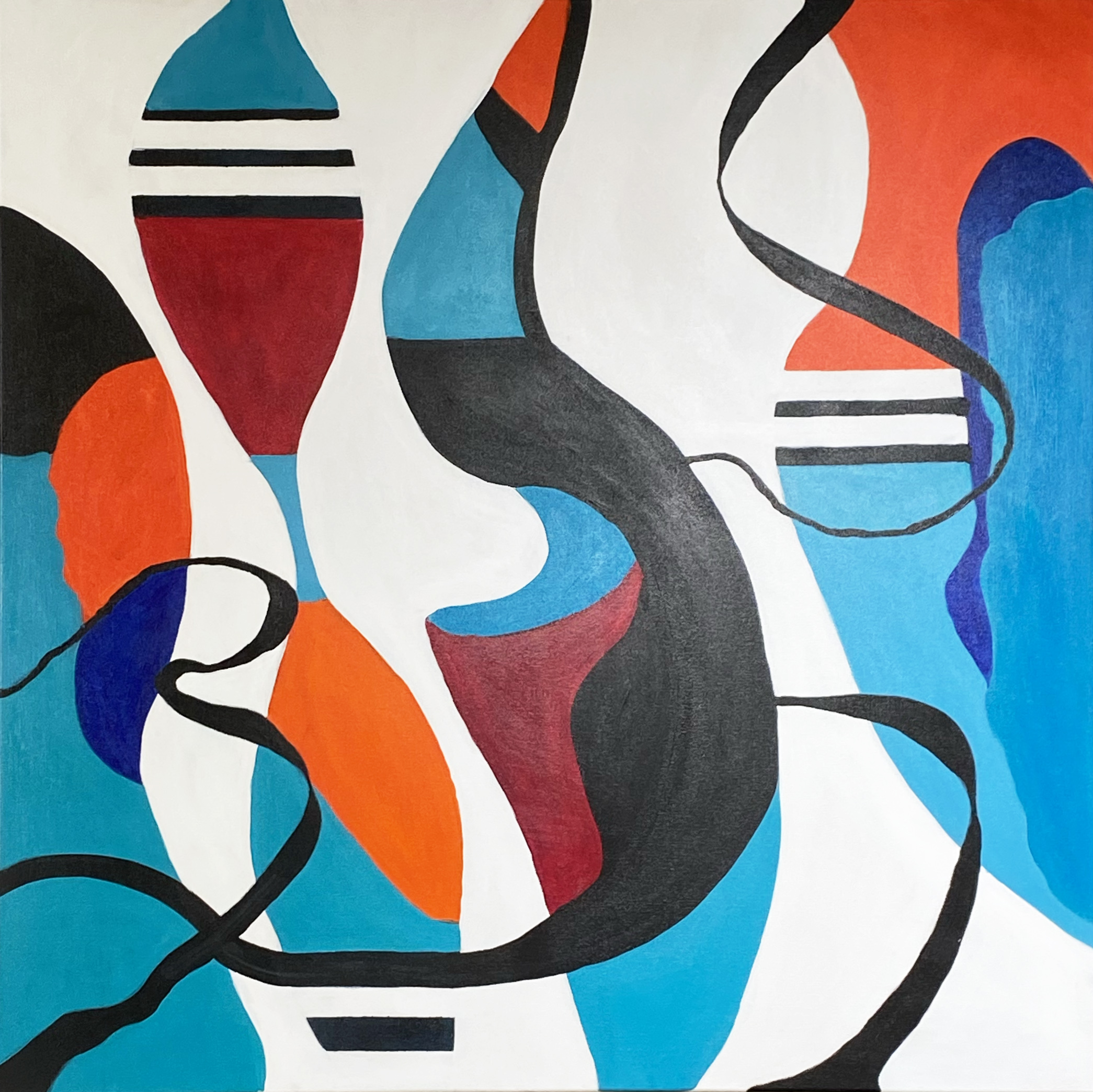 A compelling exploration of amorphous forms reminiscent of amphoras and other vessels. Negative space is as fluid as the positive spaces, and the artist has created well-balanced and intriguing forms that feel as though they might start shifting at any moment.